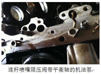 通過分析:潤滑系統有泄壓的地方,能夠影響到怠速機油壓力過低的部件有:1.機油散熱器2.機油濾清器底座3.機油泵 4.大瓦間隙過大5.缸體內部連桿噴嘴限壓閥。因為此車剛做完大修,本著先易后難的順序檢查好拆的外圍部件,1.先拆機油散熱器通過檢查未發現堵塞或其它問題2.拆檢機油濾清器檢查未發現限壓閥卡滯現象3.拆裝機油泵檢查也未發現異常。(到此外圍好拆部件都檢查沒有問題,只有再次拆檢發動機檢查缸體內部大瓦間隙以及連桿噴嘴限壓閥)4.將發動機拆解,取出曲軸并測量大瓦與曲軸間隙和大瓦厚度,經測量都在允許范圍之內,把大瓦影響壓力過低因素排除。5.最后重點檢查連桿噴嘴限壓閥,將4個噴嘴限壓閥取下后發現有其中兩個噴嘴限壓閥在常開位置,用手直接搖晃能聽見里面發出聲音,再仔細觀察里面限壓彈簧斷裂所以造成泄壓,造成怠速機油壓力過低的原因為連桿噴嘴泄壓。