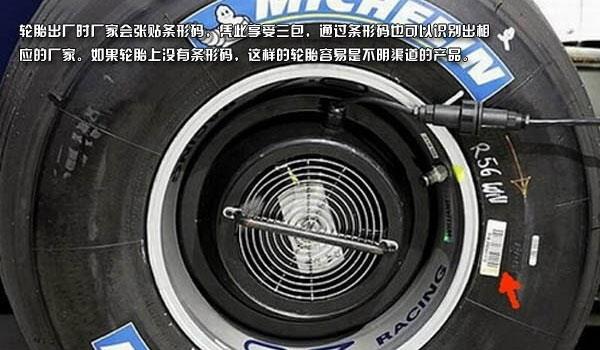 3、輪胎出廠時廠家會張貼條形碼,憑此享受三包,通過條形碼也可以識別出相應的廠家。如果輪胎上沒有條形碼,這樣的輪胎容易是不明渠道的產品。