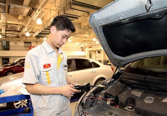 維修技師通過專用檢測設備檢查電瓶狀態