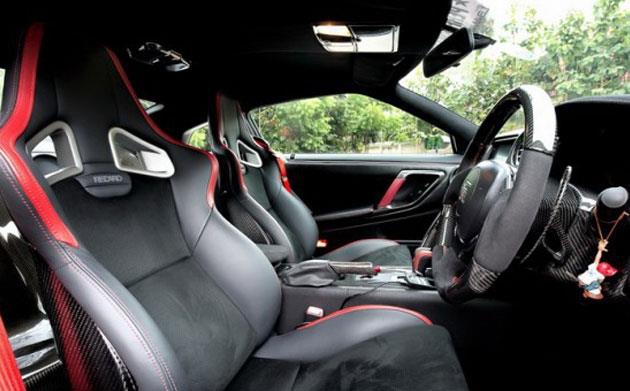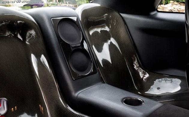 眼前的車主在內飾方面也大量選用碳纖維,就連后座也不放過