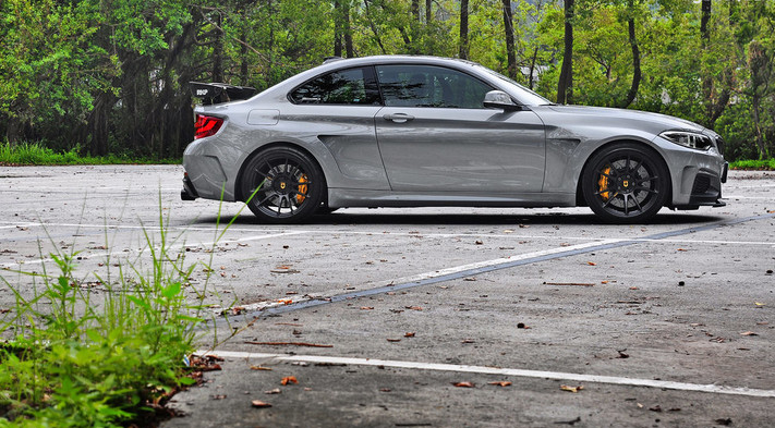 其輪拱已經加寬,并裝滿了一些精湛的19英寸緞黑色HRE輪轂。 前后都有一個圓滑的進氣口和出氣口,給汽車提供了一個空氣動力學的支持。 最后,后部已經重新設計了一個新的保險杠和集成擴散器。 總而言之,這款車現在看起來更具侵略性,車身套件和車輪賦予了M235i運動性和侵略性的外觀!